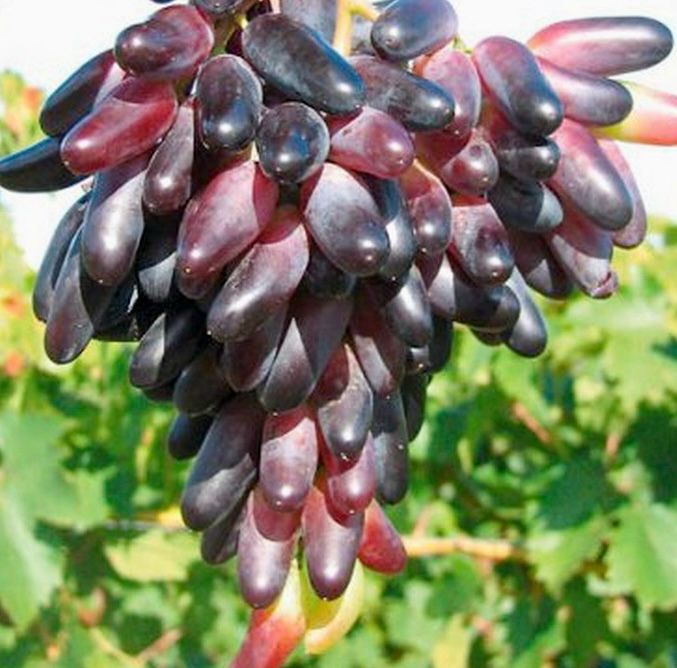 Frunzele au o marime mijlocie si cresc sub forma palmat-lombata in naunte de verde deschis iar boabele de struguri sunt mari cu un aspect interesant sub forma conica. Ele cresc foarte dens pe ciorchine. Strugurii sunt mari(380-400g),cu bobul albastru brumat, foarte alungit, coaja subtire, miezul este pietros, cu o aroma fina, specifica.